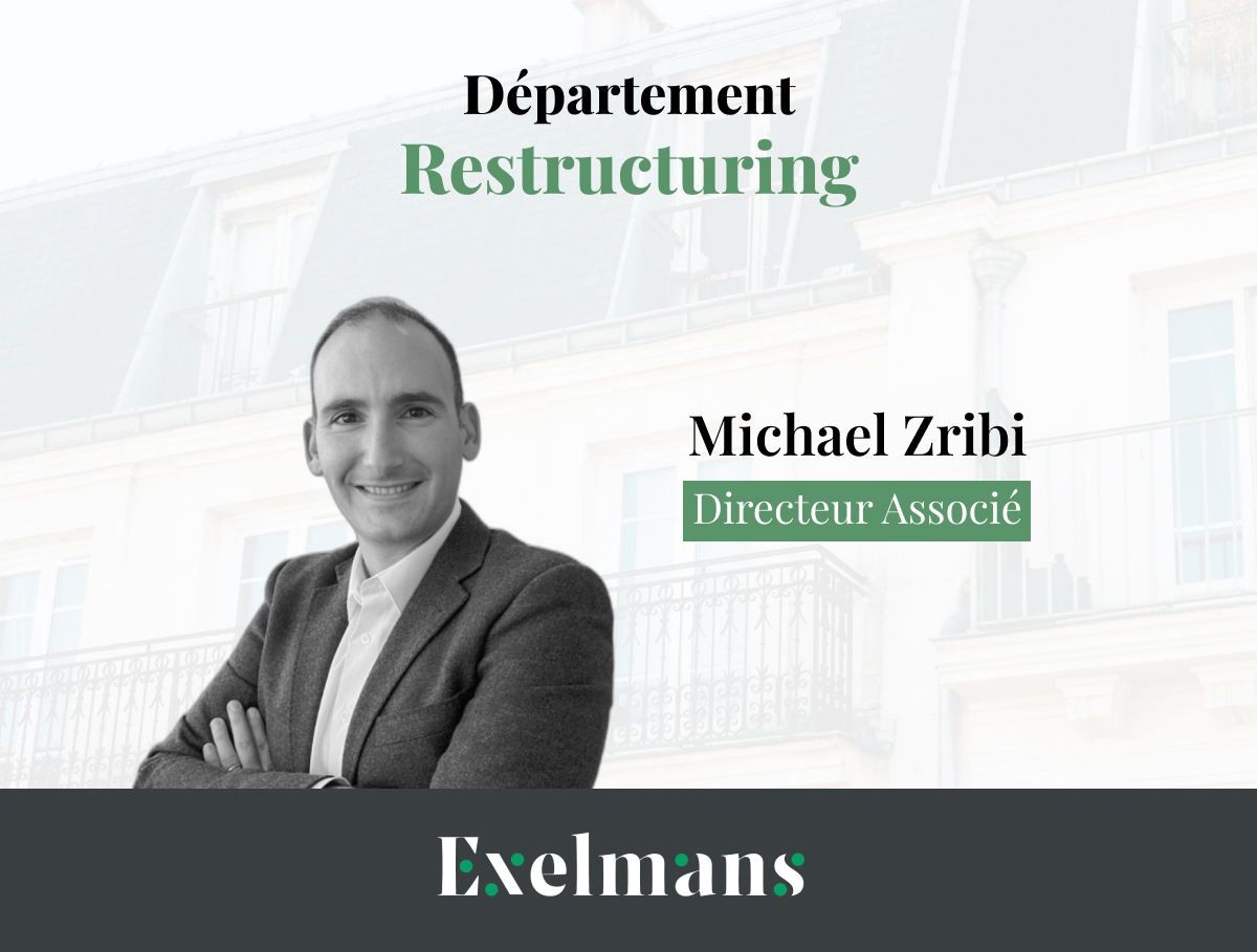Exelmans Advisory, cabinet indépendant de conseil en transaction, audit et restructuring, fondé en 2006, annonce la nomination de Michael ZRIBI en qualité de directeur associé au sein de son département Restructuring. Cette nomination s’inscrit dans le cadre du développement stratégique du cabinet, qui ambitionne de renforcer ses positions sur le marché du restructuring.